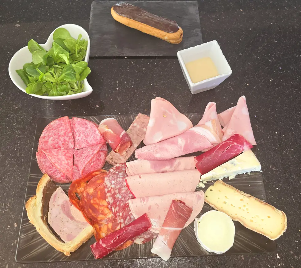 Composer d'un assortiment de charcuterie et de fromage aléatoire.